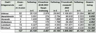 Kindergartenzweckverbandes Adenau auf 135.300 € festgesetzt und verteilt sich wie folgt auf die Mitgliedsgemeinden: