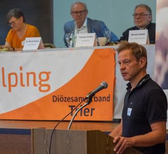 Dr. Bernd Geisen, Diözesanvorsitzender, berichtete über die unglaubliche Entwicklung der 2021 bei der Diözesanversammlung beschlossene Solidar-Aktion. Kolpingmitglieder aus ganz Deutschland und dem Ausland unterstützen in Form von Geld- und Sachspenden und tatkräftiger Hilfe. Gespendet wurden inzwischen über 330.000 Euro. Regelmäßig treffen sich Vorstandsmitglieder der Kolpingsfamilien an der Ahr, des Diözesanverbands und der Kolpingjugend, um über die Verwendung der Spendengelder zu entscheiden. „Die Aktion läuft weiter, denn viele Bedarfe werden sich erst noch zeigen.“