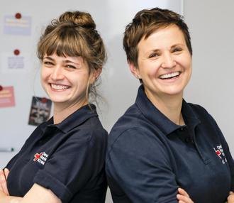 DRK-Diplom-Psychologin Kim Bühler (re.) geht neue Wege und hat zusammen mit ihrer Mannheimer Kollegin Daniela Bollschweiler (li.) den Podcast „Status 6 – Der DRK-Podcast für mentale Gesundheit im Rettungsdienst“ veröffentlicht.