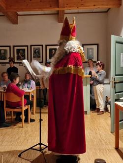 Auch der Nikolaus besuchte in diesem Jahr wieder die Adventsfeier. Er wusste unter anderem ein paar Anekdoten aus dem Dorfleben von Wershofen zu erzählen. Zum Abschluss erhielten alle Seniorinnen und Senioren ein kleines Geschenk.