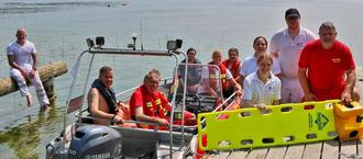 Darüber hinaus standen spezielle Wasserrettungsmittel, etwa der flexible Schaumstoffkörper, ein „Rescue Tube“, auf dem Programm. Die Einsatzmöglichkeiten des Wasserrettungsbootes demonstrierte Bootsführer Achim Haag während einer Rundfahrt über den See. „Wir wollen gar nicht in einem Tag aus einem Landretter einen Wasserretter machen. Der Ansatz, den Fachdienst Wasserrettung genau vorgestellt zu bekommen und einige einfache Maßnahmen zu lernen, ist für die angehenden Rettungsfachkräfte gut. Letztlich kann und muss jeder Retter situativ für sich entscheiden, wie er sich in seltenen und speziellen Notfallsituationen verhält, welche weiteren Schritte er veranlasst und welche individuellen Maßnahmen unter Berücksichtigung des Eigenschutzes er durchführt“, zieht DLRG-Wasserretter Michael Seimitz sein Fazit. Spaß hatten alle an diesem ungewöhnlichen und erfrischenden Unterrichtstag am und im Laacher See.