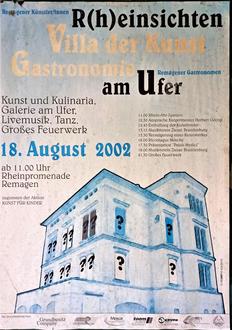 REMAGEN. Am 18. August fand eine große Kunstaktion am Rheinufer statt. 20 Jahre sind vergangen, seit die Remagener Künstlerin Gudrun Hillmann mit zwölf weiteren Künstlerinnen und Künstlern aus Remagen die Fenster der ehemaligen Steppdeckenfabrik Ohlig an der Ecke Rheinpromenade/Fährgasse mit Kunstwerken zum Thema „R(h)einsichten Villa der Kunst“ verwirklicht und zu neuem Leben erweckt hat. Die Aktion, die einige Sponsoren fand, und die „Gastronomie am Ufer“ war ein großes, gelungenes Fest.