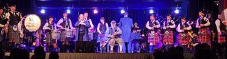 Mit zum vielseitigen Galaprogramm gehörten die Clan Pipers Frankfurt sowie die Pipers 56 Koblenz und die National Youth Pipe Band, die mit ihren Auftritten für riesigen Applaus sorgten. Auch Kathy und Paul Kelly wurden stürmisch gefeiert. Kathy, die schon öfters in Remagen sang, begeisterte u.a. mit dem intensiven „Who´ll come with me“ die Zuhörer, bei dem auch Paul einen Part übernahm. Paul zeigte als Solist sein Können auf einer historischen Drehleier, einem historischen Instrument, das wohl die Wenigsten kannten und das er dem Publikum gerne vorstellte. Der Background-Chor trug mit seinem Gesang zum schönen Klang zahlreicher Stücke bei.