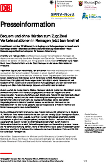 Nach einer Bauzeit von viereinhalb Jahren können Reisende und Besucher:innen somit nun auch an der Verkehrsstation Remagen in einem deutlich attraktiveren Bahnhofsumfeld und ohne bauliche Hürden zu ihrem Zug gelangen. Dafür wurden die beiden bestehenden Bahnsteige auf 76 Zentimeter erhöht. Mobilitätseingeschränkte Kund:innen, Fahrgäste mit Kinderwagen oder Fahrrädern sowie Reisende mit viel Gepäck können zudem durch die erneuerten Aufzugsanlagen und den barrierefreien Zugang zum Gleis 1 alle Bahnsteige bequem und komfortabel erreichen.