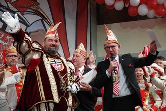 Prinz Milan I. (l.) erhielt von Bürgermeister Guido Orthen alle möglichen Stadtschlüssel.