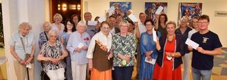 Ahr-FotoGausmann-PressebildMartin GausmannAuf den Steinen 5253474 Bad Neuenahr-AhrweilerTel: 02641-912239Fax: - Kreisbeigeordneter Friedhelm Münch (M.) und Karl-Heinz Porz, Leiter der Abteilung Soziales der Kreisverwaltung (7.v.r.), nahmen die Spende stellvertretend vom Handarbeitskreis der Seniorenresidenz Augustinum entgegen.