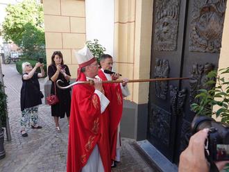 Dreimal schlug Bischof Stephan ans Portal der Kirche.