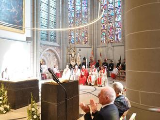 Es war wahrlich ein Festtag für den gesamten Stadtteil Ahrweiler. Schon am Morgen zogen Musikanten und alle drei Schützengesellschaften der Rotweinmetropole auf, um die Hauptzelebranten der Wiedereröffnungsfeier am Ahrtor in Empfang zu nehmen und zum Gotteshaus zu geleiten, darunter den Trierer Bischof Stephan Ackermann, der durch seine langjährige Tätigkeit am Priesterseminar Studienhaus St. Lambertus Lantershofen auch eine enge Beziehung zu Ahrweiler hat. In St. Laurentius war der heutige Aachener Bischof Helmut Dieser vier Jahre lang als Kaplan tätig, auch er war als Konzelebrant zur Weihe gekommen.