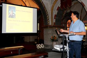 HEIMERSHEIM.GW. Mit profundem Fachwissen beeindruckte der Heimersheimer Architekt Udo Heimermann bei seinem Vortrag am Sonntag in der Pfarrkirche Sankt Mauritius. Pfarrgemeinderatsmitglied Maria Hofmann zeigte sich auch am letzten Tag der 800-Jahr-Jubiläums-Feierlichkeiten überrascht über die große Resonanz der Vorträge.