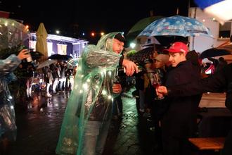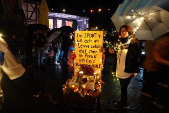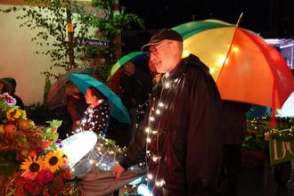 Ging es an den drei FestiWein-Tagen vor allen Dingen vor den Bühnen am Backes und auf der Königsstraße buchstäblich rund, so verteilten sich die Menschen am Abend des dritten Festtages im ganzen Ort. Allerdings sorgte Dauerregen ab dem späten Nachmittag dafür, dass es am Abend nur ein paar hundert Gäste waren, die sich zumeist unter Schirmen den „Weinlesezug der 10.000 Lichter“ nicht entgehen lassen wollten. Mit diesem Weinfestzug in der Dunkelheit hebt man sich in Bachem seit vielen Jahren von anderen Wein- und Winzerfesten ab. Mit im Zug waren zahlreiche Weinmajestäten dieses Jahres aus dem Ahrtal und vergangener Jahre auch Bachem. Leider verhinderte der Regen, dass sie in ihren Cabrios offen durch den Frühburgunderort fahren konnten. Dennoch ließ man sich die gute Laune nicht verderben. Das galt auch für die Bachemer Vereine. Egal ob Sportverein, Winzerstammtisch oder Karnevalisten – sie waren dabei und feierten ihre Weinregentinnen, die in geschlossener Kutsche von zwei Pferden durch den Zug geleitet wurden. Bacchus Bernd Walther nahm sogar auf einem Fass unter freiem Himmel Platz. Musikanten aus dem Brohltal, der Kreisstadt, der Eifel und der Grafschaft sorgten dazu für beste Laune.