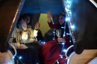 Für Weinkönigin Merle (r.) und ihre Prinzessinnen blieb nur die Fahrt in geschlossener Kutsche.