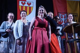 Weinkönigin Merle erhielt die Krone von ihrer Vorgängerin Lena und darf sich nun Weinkönigin von Bachem nennen.