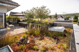 So hat die Firma PlannIng GmbH in Zusammenarbeit mit der Firma Wershofen Garten den Satz von Friedensreich Hundertwasser „der Mensch muss auf den Dächern der Natur zurückgeben, was er ihr unten beim Hausbau weggenommen hat“ mit Orientierung auf den Schutz unserer Natur perfekt umgesetzt.