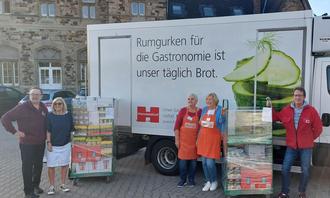 Einige haben zu dieser großen Spende beigetragen: die rotarischen Freunde aus Remagen Sinzig mit ihrer Past-Präsidentin Annegret Steegers, die anlässlich ihres Geburtstags einen Betrag von Euro 500 Euro spendete. Als Repräsentant des Seniorenzentrums Maranatha unterstützte Harald Monschau, ebenfalls Past-Präsident der rotarischen Freunde Remagen Sinzig, die Tafelausgabestellen Sinzig und Ahrweiler mit 1.100 Euro. Und für den Handelshof überreichte Geschäftsführer Gerhard Rienas Lebensmittel wie Öl, Milch, Kaffee und Konserven im Gesamtwert von 400 Euro.