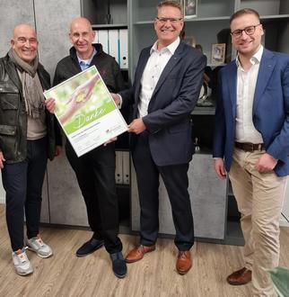 Uli Scheele, Wolfgang Schröck, Frank Burow und Richard Gies (v.l.) sagen „Danke“ für alle Gelder, die bei der Wiedereröffnung der OVB-Beratungsstelle dem Hospiz gespendet wurden.
