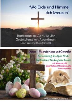 10:00 Uhr „Ostern – Mehr als Hasen und Ostereier“. Gottesdienst mit Abendmahl, anschließend Ostereiersuche, Auferstehungskirchengemeinde Hagenbach