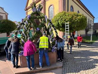 Das Kreativteam und der Bauhof haben die Osterkrone bereits gestellt