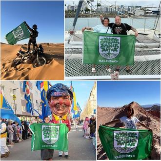 In den letzten Wochen waren wieder einige Hagenbacherinnen und Hagenbacher unterwegs und hielten stolz die Hainbuche hoch. Immer wieder ein spannender Moment. Robin Scherrer war mit seinem Motorrad in der Sahara-Wüste auf der Strecke Paris-Dakar, Sabine Scherrer und Steffen Helderich waren in der Karibik auf Barbados, Ute Thut feierte beim Rosenmontagsumzug in Mainz, Monika Kessler reiste in die Atacama-Wüste in Chile. Alle hatten eine gute Zeit und grüßen die Heimat.