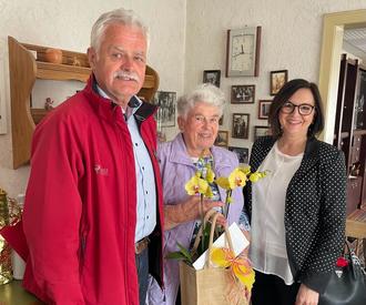 Frau Gisela Stephany aus Scheibenhardt feierte am 02. Mai 2023 ihren 90. Geburtstag. Bürgermeisterin Iris Fleisch und Ortsbürgermeister Edwin Diesel überbrachten die Glückwünsche der Verbandsgemeinde und der Ortsgemeinde und überreichten der noch rüstigen Jubilarin Präsente. Sie wünschten ihr noch viele glückliche und zufriedene Jahre in bester Gesundheit.
