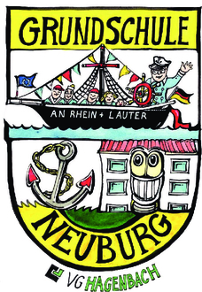 Im Frühjahr 2019 arbeiteten die Kinder, Eltern und Lehrkräfte der Grundschule in Neuburg mit viel Spaß und Freude an den Vorbereitungen für die 800-Jahr-Feier Neuburgs. Als im April der Förderverein tagte, kam die Frage auf: Warum besitzt eine Schule in einem Ort, der auf so viel Geschichte zurückblicken darf, keinen eigenen Namen? Damit war die Idee geboren. Mit allen Schulkindern gemeinsam wollten wir überlegen, wie unsere Grundschule heißen könnte. Viele passende Namen kamen aus den Klassenstufen zur Abstimmung: Von der „Schule am Schiff“, ging die Mehrzahl der Stimmen zur „Fischer- und Schiffergrundschule Neuburg“. Auch die Namen „Rheingrundschule“ und „Rheinauengrundschule“ kamen in die enge Auswahl. Über das Amtsblatt wurden außerdem die Neuburger Bürgerinnen und Bürger aufgerufen, sich an der Namenssuche zu beteiligen und Ideen einzubringen. Nach vielen Gesprächen und Überlegungen stand im November 2020 fest: „Grundschule an Rhein und Lauter Neuburg“ sollte es werden. Nachdem erst der Ortsrat seine Zustimmung gab, wurde in der Verbandsgemeinderatssitzung entschieden, dass die Grundschule Neuburg ihren neuen Namen „Grundschule an Rhein und Lauter Neuburg“ tragen darf. Auch von Seiten der ADD erhielten wir grünes Licht und so konnte der nächste Schritt gegangen werden. Die Schule brauchte ein Schullogo! Auch für diesen wichtigen Teil erhielten wir Unterstützung von Seiten der Kinder. Aus jeder Klassenstufe wurde ein Entwurf eingereicht, der zur schulinternen Endabstimmung aufgenommen wurde. Der Entwurf von Jannik Frank erhielt die Mehrzahl der Kinderstimmen und wurde im Sommer 2022 an den Künstler Armin Hott übergeben. Mit viel Geduld und Feingefühl setzte er die Wünsche der beteiligten Instanzen um und überreichte uns Ende des Jahres 2022 das Kunstwerk. Das Original kann im Obergeschoss des Verwaltungsgebäudes der Grundschule an Rhein und Lauter betrachtet werden. Die Grundschule bedankt sich für die gemeinsame Arbeit aller Schulkinder, Eltern, Bürger Neuburgs, bei Armin Hott, bei allen beteiligten Instanzen und insbesondere für die Mitwirkung und die großzügige finanzielle Unterstützung des Fördervereins unserer Grundschule, ohne den das Projekt nicht möglich gewesen wäre.