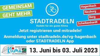 Registrieren Sie sich unter stadtradeln.de/vg-hagenbach und treten Sie einem vorhandenen Team bei, gerne auch als Einzelfahrer dem offenen Team der Verbandsgemeinde Hagenbach oder gründen Sie Ihre eigene Gruppe.