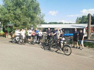 Koordinator Tobias Zimmermann und Bürgermeisterin Iris Fleisch mit den weiteren Stadtradlern..