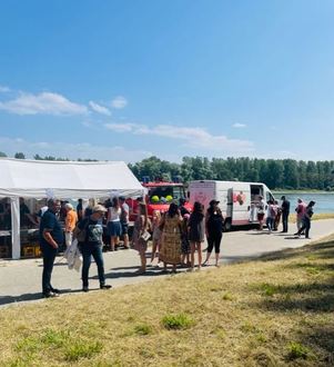 Die Freiwilligen Feuerwehren der Ortsgemeinden Berg, Neuburg und Scheibenhardt boten für die Gäste Pfälzer Saumagenburger, Bratwürste und kühle Getränke an. Ein Highlight für Groß und Klein war der Eiswagen der Eis Angel´s, der um kurz nach 13:00 Uhr anrollte. Auch verschiedene Aussteller wie der PAMINA-Rheinpark, die Tourismusgemeinschaft Albtal Plus e.V., der Südpfalz Tourismus der Verbandsgemeinde Bellheim e.V. und die Bienwald-Honigmanufaktur Mißbach stellten sich vor. Von den Tourismusvereinen wurden Flyer und Infomaterial ausgehändigt, die Honigmanufaktur bat regionale Honige, Honigverkostung, Deko Accessoires u.v.m. an. Durch Herrn Gerd Balzer wurde der historische Rheinverlauf anhand der Rheinverlaufskarte erläutert. Ebenfalls der Bauhof der Ortsgemeinde Neuburg wirkte bei dem Auf- und Abbau des Festes mit.