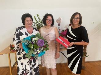 Auch Bürgermeisterin Iris Fleisch überbrachte Dankes- und Abschiedsworte. Die Zusammenarbeit mit der Verwaltung sei stets ein „erfolgreiches Miteinander“ gewesen. Riegers höflicher, stets respektvoller Umgang, habe maßgeblich zur gelingenden Arbeit beigetragen. Als Schulleiterin benötige man nicht nur ein Händchen für Organisation und Management, sondern es gehöre eine große Portion Idealismus, Belastbarkeit, aber auch eine gute Portion Gelassenheit dazu. Frau Rieger sei es gelungen, die Schule aktiv zu gestalten und zu lenken. „Sie haben das Klassenziel erreicht“, bescheinigte die Bürgermeisterin und wünschte Gesundheit, gute Laune, viel Zeit mit der Familie und dass Hanna Rieger neue Aufgaben für sich entdecke, die ihr Freude bereiten und ihrem Tatendrang gerecht würden. Auch Ortsbürgermeisterin Sabine Gerhart bedankte sich für die gute Zusammenarbeit und überbrachte herzliche Wünsche für den Ruhestand. Abgerundet wurde die Veranstaltung durch einen gemeinsamen Umtrunk.