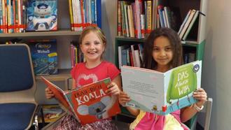 Mit den Schulferien und unseren beiden Mädchen auf dem Bild, gehen unsere Lesepaten-Geschichten vorerst zu Ende. Emma-Sophie und Melissa sind, wenn man so will, die Siegerinnen unserer Lesebemühungen. Emma-Sophie konnte schnell routiniert lesen, danach organisierte sie mit ihrer Freundin Melissa gegenseitiges Vorlesen. Melissas Eltern kommen aus Ägypten, sie spricht und liest zwar ganz gut in Deutsch, doch manche Wortbedeutungen wie z.B.