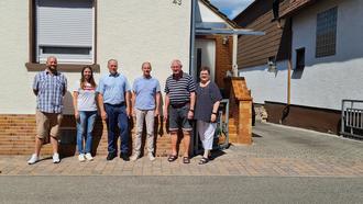 Christian Kastler und Jessika Wolmeringer von der Dt. Glasfaser, Ortsbürgermeister Hermann Knauß, Herr Rinnert von der Verbandsgemeindeverwaltung und Herr und Frau Herold (v.l.n.r.)