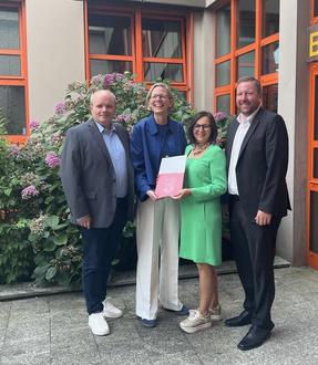 An der Übergabe nahmen neben der Staatssekretärin auch Steffen Weiß, Bürgermeister der Stadt Wörth am Rhein, Iris Fleisch, Bürgermeisterin der Verbandsgemeinde Hagenbach sowie Mike Schönlaub, Bürgermeister der Verbandsgemeinde Kandel, teil.
