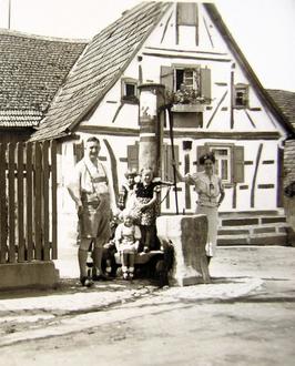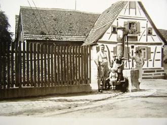 Zur Sicherung der Wasserversorgung gab es 1930 in Neuburg 30 Dorfbrunnen. Der im Bild stand in der Hauptstraße 23.
