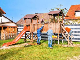 Carlo Dübon, Peter Grosse, Karl Meyer und Albert Eck haben die Anlagen auf dem Spielplatz in der Trifelsstraße wieder auf Vordermann gebracht. Herzlichen Dank.