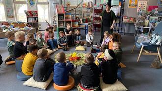 Anlässlich der geplanten Halloween-Lesenacht besuchte die zweite Klasse der Grundschule Berg die Bücherei Hagenbach. Empfangen wurde sie von der Bibliothekarin, die als Hexe verkleidet die Kinder willkommen hieß. Zunächst machten sie es sich um ein „Lagerfeuer“ auf bunten Kissen gemütlich und lauschten gebannt den gruseligen Geschichten, die Frau Heilmann aus ihrem dicken Zauberbuch vorlas.