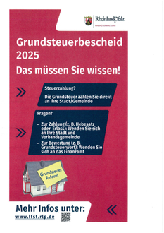 1. Fragen zum Grundsteuerbescheid (z. B. zu Zahlung, Hebesatz oder Erlass der Grundsteuer) beantwortet die Stadt- oder Verbandsgemeindeverwaltung. Die Kontaktdaten entnehmen Sie bitte dem Grundsteuerbescheid.