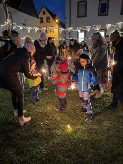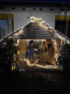 Nun erstrahlt die Krippe wieder jeden Abend im Garten der Kita und lädt Spaziergängerinnen und Spaziergänger zum Verweilen und Staunen ein.