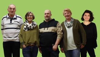 Vorstand GRÜNE OV Kandel (von links nach rechts ) Martin Lind (Kassierer), Ursula Schmitt-Wagner (2. Vorsitzende), Thomas Schönitz (1. Vorsitzender), Rita Tolksdorf (Beisitzerin)und Patricia Bonaudo (Beisitzerin)