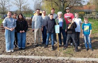 Im Mai 2022 mit drei Hochbeeten begonnen, wachsen seitdem nicht nur die Pflanzen in den Beeten, sondern auch die Anzahl der Kümmerer und Pflanzpaten in ganz Kandel. Im vergangenen Jahr ist die Zahl der bepflanzten Hochbeete auf insgesamt elf angewachsen und auch für dieses Jahr sind schon wieder fünf weitere geplant. Einer der Newcomer ist die IGS Kandel, deren Schülerinnen und Schüler für mehr essbares Grün auf dem Schulgelände sorgen. Am Donnerstag, den 21.03.2024, war es dann soweit: Unter Anleitung der Lehrkräfte wurden die Hochbeete bepflanzt und angegossen sowie der Boden des Schulgartens umgegraben und Samen eingesät - die Gartensaison kann beginnen! Persönlich von der Arbeit der Schülerinnen und Schüler sowie der Lehrkräfte haben sich Jutta Wegmann (Kreisbeigeordnete und Beigeordnete der Stadt Kandel), Philipp Riedel (Klimaschutzmanager Kreis Germersheim) und Dominik Hasselwander (Klimaschutzmanager VG Kandel) vor Ort persönlich überzeugt. Der Schulgarten durch praktischen Bezug und direkte Naturerfahrung für Schülerinnen und Schüler ein Bewusstsein für Natur, Umwelt und Garten schaffen.