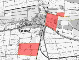 Nördlich der L548 bis zum Bahngelände am Ortsrand Winden.