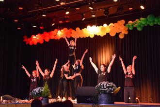 Abwechslungsreiche Beiträge aus den Projektgruppen lockerten den Festakt immer wieder auf: Die Tanzgruppe „Cheerdance“ unter Leitung von Frau Fink-Rödel sorgte mit energiegeladener Performance für Applaus, die Gesangsklasse 5c unter der Leitung von Frau Hitzel präsentierte das Lied „Schule ist mehr“, und ein Lehrer-Schüler-Tanz im Rahmen des Projekts „Graffiti“ brachte kreative Bewegung auf die Bühne.