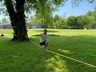 Ab sofort ist bei uns das „Slacklining“ möglich, eine neue Trendsportart