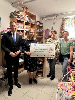 Wir sagen vielen Dank an die VR Bank Südpfalz für 500 € Spende für unseren Kinderkleiderladen. Mit dem Geld möchten wir den Kinderkleiderladen attraktiver gestalten.