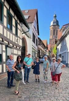 Am Mittwoch, den 31. Mai waren 12 Mitglieder der Interessengemeinschaft Südpfalz Gästeführer*innen grenzenlos in der Stadt unterwegs. Im Rahmen der kollegialen Weiterbildung treffen sich die Mitglieder mehrmals im Jahr an wechselnden Orten, um sich gegenseitig die Angebote zu präsentieren. In Kandel wurden ihnen, nach einem ausgiebigen Besuch der Tourist-Information, von unserem Vereinsmitglied und Stadtführer Michael Walter, der auch Mitglied des Gästeführervereins ist, die Sehenswürdigkeiten und Geschichte(n) Kandels präsentiert. Von der Vielfalt der Gebäude und Skulpturen und der reichen Geschichte bis zurück zu Spuren der Römer, waren alle Teilnehmenden sichtlich beeindruckt. So ergaben sich bei dem anschließenden Beisammensein in einem der vielen Kandler Restaurants noch angeregte Gespräche. Mehr Informationen zu den Gästeführer*innen und ihren Angeboten finden Sie unter www.suedpfalz-grenzenlos.de