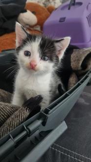 Dieses Katzenbaby ist in Minfeld in Feuerwehrnähe zugelaufen.