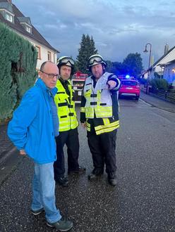 Stefan Moschko, Ortsbürgermeister von Winden, und der erste Beigeordnete der Verbandsgemeinde, Josef Vollmer, machten sich vor Ort ein Bild von der Lage. Als vorbildlich lobten diese nicht nur das koordinierte Handeln der Feuerwehren, sondern auch die große Zahl der privaten Helfer. Auch Gesamteinsatzleiter Alexander Ditz, Abschnittsleiter Mike Schönlaub und die Wehrführung der Gemeinde Winden, Daniel Stripf und Marco Weyrauch, dankten allen Anwohnern, die hier schnell und ohne zu zögern mit angepackt haben: Wenn es darauf ankommt, helfen alle einander, denn es kann jeden treffen.