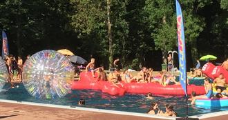 Bei bestem Sommerwetter und Temperaturen um die 30 Grad brachte das von der Sparkasse engagierte Zephyrus - Team, langjährige Partner der Sparkasse und somit ebenfalls fester Bestandteil dieser Poolpartys, die einigen Hundert Kinder und Jugendlichen gleich so richtig in Fahrt.