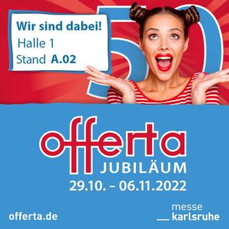 Vom 29.10. – 06.11.2022 findet in Karlsruhe die beliebte Verbrauchermesse "offerta" statt. In diesem Jahr feiert sie ihr 50-jähriges Jubiläum.