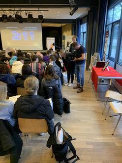 Am Dienstag, den 24.01.2023, hatten die 11. Klassen der IGS Kandel die Gelegenheit, einen Workshop der Veranstalter --- zu besuchen. Im Rahmen der halbjährlich stattfindenden Thementage stellten die Veranstalter ihr Konzept einer modernen Berufsorientierung vor. Das Ziel des jungen Start Ups, aus dem Jahr 2017, ist eine Gesellschaft voller Mutmacherinnen und Mutmacher, „in der der Großteil aller Menschen motiviert aufwacht, gerne zur Arbeit geht und abends erfüllt einschläft. Eine Gesellschaft, die geprägt ist von Respekt, Toleranz und gegenseitiger Wertschätzung.“ (https://www.mein-mutiger-weg.de/ueber-uns/)