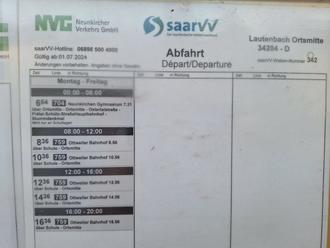Zukünftig fahren vormittags direkte Busse im 2-Stunden-Takt von Lautenbach über Fürth und Steinbach nach Ottweiler und zurück. Ein Umsteigen ist nicht mehr erforderlich! Die Fahrdauer beträgt ca. 20 Minuten.