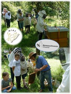 Am 25. Juli fand der 2. Bienentag der Anton Hansen Schule statt. Das Imkerehepaar Susanne und Jürgen Schneider konnte die Schulkinder und ihre Betreuer in Fürth am Bienenstand des Bienenzuchtvereins Ottweiler bei herrlichem Sonnenschein begrüßen. Nach einer kurzen Sicherheitsbelehrung zum Verhalten am Bienenstand wurden Schutzhauben und Imkerjacken ausgegeben. „Wenn die Bienen gut drauf sind, muss man nicht unbedingt Schutzkleidung tragen. A & O ist, dass man am offenen Bienenstock keine hastigen Bewegungen macht. Manchmal setzen sie sich einem auf die Hand und wenn man ruhig bleibt, dann passiert meistens auch nichts. Es kommt aber auch vor, dass sie sich auf den Kopf setzen und sich dann in den Haaren verheddern und dann stechen. Deshalb ziehen Imker häufig einen Imkerhut an, wenn sie keine Schutzkleidung tragen“, erklärte Herr Schneider. Noch war bei den Kindern eine gewisse Unruhe zu spüren. Als der Imker jedoch eine mit Bienen vollbesetzte Wabe aus dem Bienenstock entnahm und zu den Kindern brachte wurde es ruhig in der Gruppe. „Ist da die Königin dabei“, fragte ein Junge. „Nein. Das ist eine Honigwabe und Königinnen findet man nur ganz selten hier. Da wir jedoch kein Absperrgitter zwischen dem Brutraum und dem Honigraum einsetzen könnte es sein, dass sie hier herumkrabbelt. Aber nein, sie ist nicht hier“ antwortete der Imker. Danach holt der Imker eine weitere Wabe und berichtet, dass es eine Brutwabe ist. Er zeigt den Futterkranz, die bunten Waben, in denen Pollen verschiedener Pflanzen eingelagert sind, die Stifte, die noch gekrümmten Maden und die verdeckelte Brut. „Schaut mal in der Mitte des Brutnestes! Dort ist ein kleines Loch im Wachsdeckel und es schauen schon zwei Fühler heraus. Es schlüpft gerade eine Biene“, erklärt Schneider mit Begeisterung. „Wie lange dauert es bis sie herauskommt?“, will ein Betreuer wissen, holt sein Handy und beginnt die ‚Geburt‘ zu filmen. Alle schauen gespannt auf die Wabe. Und dann, nach 6 oder 7 langen Minuten, ist es geschafft: Die junge, noch ganz helle Biene krabbelt aus ihrer Wabe, läuft los, um im Gewimmel ihrer Schwestern und Stiefschwestern zu verschwinden. Und dann sind da noch ein paar Drohnen, sicher an ihren größeren Augen und ihrem breiteren Hinterleib zu erkennen. „Es sind nicht mehr so viele Drohnen im Volk. Ungefähr ab der Sommersonnenwende und in Abhängigkeit von der aktuellen Futtersituation, zerren die Arbeiterinnen die Drohnen aus dem Bienenstock und lassen sie nicht wieder herein. Diese verhungern dann. Zum guten Schluss gibt’s frischen Honig: Mit den Fingern direkt aus der verdeckelten Honigwabe. Nach zweieinhalb Stunden findet der Besuch sein Ende. Die Kinder sowie ihre Betreuer sind sich einig: Das war cool, besonders das Schlüpfen einer Biene mitzuerleben und dann noch den frischen Honig zu naschen. Susanne und Jürgen Schneider bedanken sich für das Interesse und das rege Mitmachen der FGTS-Schul(ferien)kinder an diesem Bienentag.